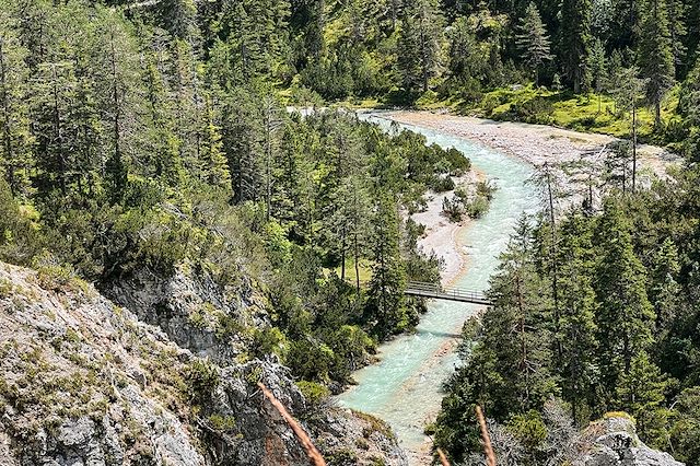 incursion en Autriche à la source de l'Isar vraiment magnifique, certaines portions méritent un VTT (5%)le reste bien adapté au VTC, vaut mieux emmener son propre matériel. Balisage correct, il faut quand même la carte et le road book par endroit, notamment pour les débuts d'étapes, et à quelques rares endroits où le balisage n'existe plus.