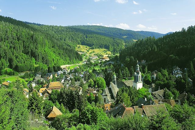 Découvrez la Forêt Noire sur un itinéraire accessible entre histoire et nature. La piste cyclable de la Forêt-Noire du sud traverse les paysages idylliques du Markgräflerland avec ses collines recouvertes de vignes et ses stations thermales. Sur le plan culturel, les visites ne manquent pas : petites villes médiévales, mais aussi grandes villes historiques comme Bâle ou Fribourg-en-Brisgau. En empruntant le circuit de la Bähnle, une ancienne voie ferrée, vous arriverez en bordure des gorges de la Wutach. Sur ce circuit largement dominé par la nature, vous atteindrez les villes de Bâle et de Fribourg en longeant les rives de la Wutach, du Haut-Rhin et du Rhin supérieur.
