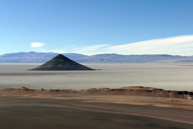 Nous laissons derrière nous le village d'Alfarcito et prenons de la hauteur en gagnant progressivement l'Altiplano argentin. Le décor minéral est ponctué de troupeaux de lamas et de vigognes. Nous traversons de nouvelles étendues de sel avec en toile de fond les volcans culminant à plus de 6000m. Nous voilà dans Los Colorados ; nouveaux contacts avec les paysages surréalistes de la Puna argentine. Nous sommes entourés de collines de terre et d'argile avec la sensation d'être sur une autre planète. Les sommets enneigés de la cordillère des Andes viennent parfaire le paysage. Arrivée à Tolar Grande en fin d'après-midi.