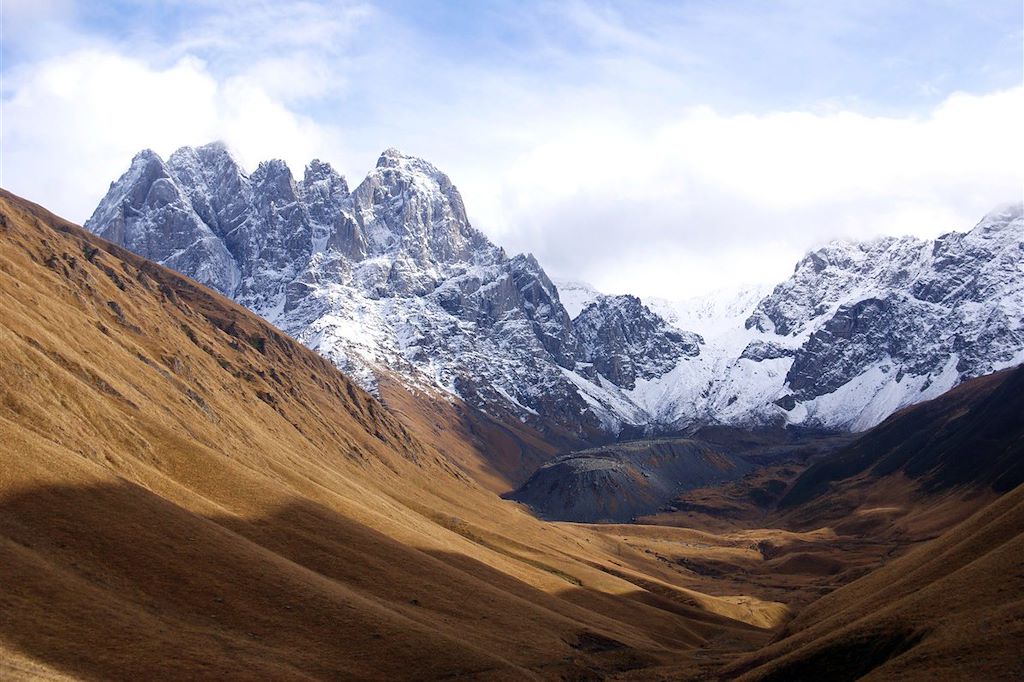 Cet itinéraire dévoile quelques-uns des plus beaux secrets du Caucase. Nous voyageons de la Géorgie à l'Arménie pour découvrir ces deux musées à ciel ouvert. Ces deux pays, au carrefour de l'Asie et de l'Europe, recèlent des secrets encore méconnus des Occidentaux. Dans ce décor de montagnes piquetées de monastères, au cœur de la mythique chaîne du Caucase, nous allons à la rencontre d'un peuple ouvert et chaleureux au travers de randonnées sur des sentiers ancestraux. Nous visitons la Géorgie, avec des randonnées autour du mont Chaukhebi, dans les vallées de Sno et Trussot, offrant des panoramas spectaculaires sur le mont Kazbek qui trône fièrement à plus de 5000m. Du sud du pays, nous arrivons en Arménie voisine. Nous découvrons les multiples facettes de l’Arménie, entre la belle région d'Haghpat, aux paysages contrastés du sud du pays et de la région de Dilidjan, surnommée la "Suisse arménienne". Notre déambulation arménienne sera également marquée par de nombreux moments d'échange avec cette population si généreuse et accueillante.