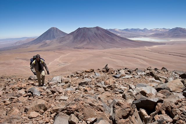 • Très bonne condition physique. Haute altitude et conditions climatiques parfois difficiles. 2 à 10h de marche par jour. Ascension des volcans Irruputunco (5163m), Tunupa (partielle, 4700m), Licancabur (5916m) et l'Uturunco (6040m).