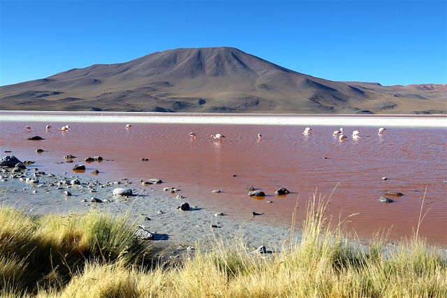 Le haut plateau désertique du Lipez, côté bolivien, dévoile d’extraordinaires paysages aux couleurs irréelles. Nos pas nous mènent au cœur des cordillères volcaniques, au bord des extraordinaires Lagunas Verde et Colorada, dans des déserts aux noms évocateurs, dont le désert de Salvador Dali, réputé pour ses volcans dont les flancs bariolés évoquent une palette du peintre. Clou du spectacle : le salar d’Uyuni, immense étendue blanche et scintillante.