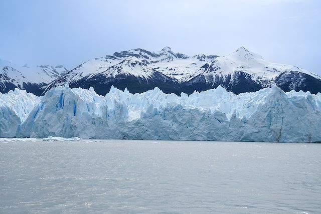 Nous quittons la vallée d'El Chaltén dans les lumières du matin pour rejoindre El Calafate en bus collectif puis le glacier Perito Moreno. Sur le site, un réseau de passerelles aménagées permet d'observer le colosse de glace depuis plusieurs points de vue. En fonction de la période de notre venue, ce glacier peut fermer le passage du canal dans lequel il se jette, provoquant ainsi la montée des eaux en amont. Au cours de l'après-midi nous avons tout le loisir de contempler les éventuelles chutes de séracs, au bruit retentissant. La soirée se déroule paisiblement dans l’ambiance animée d'El Calafate.
