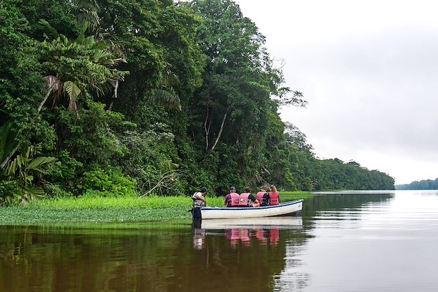 Route pour Tortuguero, la "petite Amazonie" du Costa Rica ! Nous traversons la plaine des cultures bananières avant d'embarquer à bord d'une pinasse collective sur la rivière La Suerte. Nous naviguons le long les méandres des rivières, traversant le parc jusqu'à atteindre la mer des Caraïbes, au niveau du petit village de Tortuguero. Réputé pour son extraordinaire biodiversité et notamment ses tortues, le parc national de Tortugero se visite uniquement par les voies aquatiques offertes par de nombreux canaux qui s'entremêlent à travers la jungle. Installation à l'hôtel et découverte du village à l'ambiance "Caraïbes". Déjeuner et temps libre pour découvrir le jardin exotique autour de l'hébergement, avant d'aller se balader le long du littoral sauvage et de rentrer au village pour le dîner.