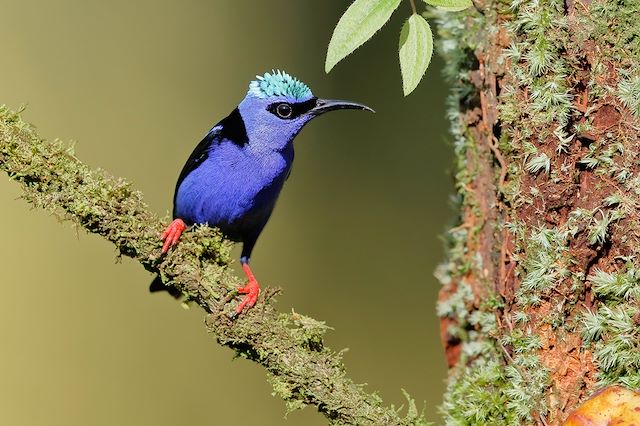 La journée est placée sous le signe de l'observation animalière ! A commencer par les différents oiseaux colorés de la région autour de l'hôtel, à l'heure du petit déjeuner. Puis, nous partons repérer les paresseux dans leur milieu naturel. Cet animal emblématique du Costa Rica séduit par sa face sympathique et sa lenteur. Il fait partie de cette curieuse famille de mammifères nommée "les édentés", avec les fourmiliers, les tatous, les pangolins... Nous montons ensuite dans le bus et roulons le long de la cordillère volcanique de Tilarán qui s'étire vers le nord-ouest pour rejoindre les abords du volcan Tenorio. Nous rejoignons une ferme depuis laquelle nous pourrons randonner et nous baigner dans le Río Celeste, une rivière aux surprenantes couleurs. Installation à l'hôtel et temps libre pour profiter des installations. En soirée, sortie nocturne en bordure de ruisseau à la recherche de diverses espèces de grenouilles facétieuses et presque transparentes (on les appelle "grenouilles de verre"), qui sonnent en carillon sous nos yeux sans pourtant se laisser voir. Comme si elles se moquaient un peu de nous ! Certaines espèces, vénéneuses, arborent de ce fait de magnifiques couleurs. C'est ainsi que s'achève une bien belle journée d'observation colorée !