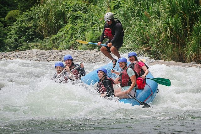 Journée placée sous le signe de l'eau ! Réveil au lever du soleil par un charmant concert de chants d'oiseaux, et petit déjeuner avant d'attaquer une belle aventure, épique et hilarante : une descente des rapides de la rivière Sarapiquí en bateau à boudins d'air. En d'autres termes, une initiation au rafting et des sensations fortes à partager en famille ! Puis nous quittons le versant caraïbe pour l'ouest et les contreforts de la plus grande réserve naturelle privée du Costa Rica, "El Bosque Eterno de Los Niños". Arrêt déjeuner sur la route et baignade relaxante dans des piscines naturelles d'eaux volcaniques aménagées en pleine forêt primaire. Nous alternons, à notre gré, les bains chauds et froids, pour revitaliser nos vaisseaux sanguins ! Arrivée à l'écolodge et installation pour deux nuits.