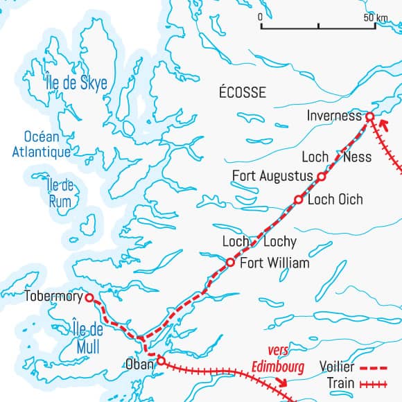 Nous explorons les Highlands par la mer et les lochs, en avançant au rythme du vent et des écluses. Cette croisière est conçue pour les voyageurs qui aiment naviguer et contempler, marcher et ressentir l’âme d’un territoire. Depuis Inverness, nous franchissons le Caledonian Canal, glissons sur le Loch Ness puis gagnons la côte ouest. Escales dans des ports de pêche, randonnées sur des rivages sauvages, lumière changeante des Highlands : nous rejoignons Oban au terme d’une navigation douce et inspirante.