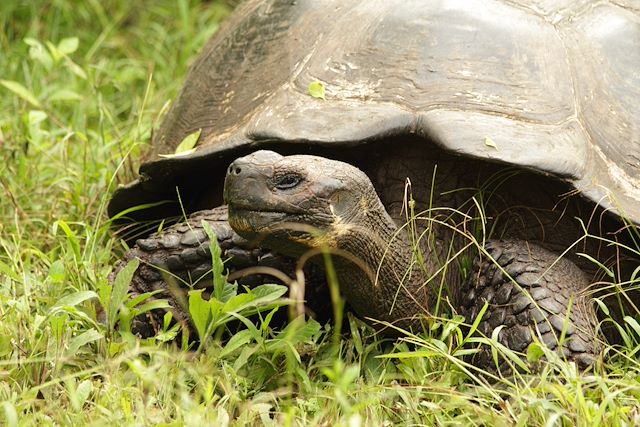 Navigation pour l'île Santa Cruz (2 à 3h selon la vitesse du bateau et l'état de la mer). Découverte de Los Gemelos, d'impressionnants cratères couverts d'une luxuriante forêt tropicale humide, abri naturel pour de nombreux oiseaux. Nous traversons des tunnels de lave souterrains et explorons le haut de l'île, à la recherche des tortues géantes peuplant ces lieux.