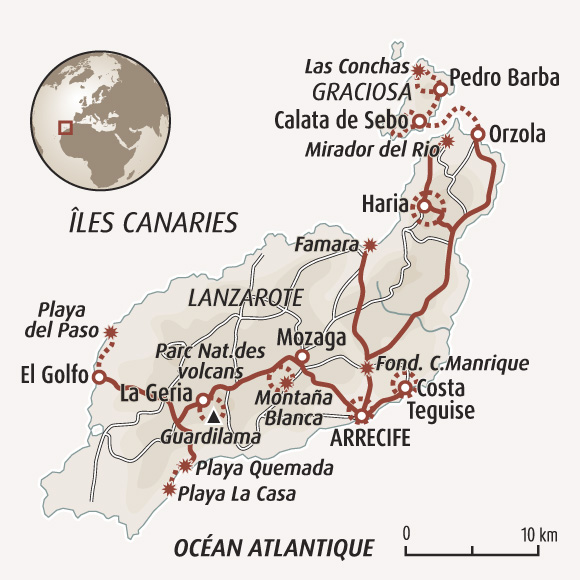 Un guide francophone, expert de l'ile de Lanzarote, vous accompagne pour 4 randonnées (3 demi-journées avec env. 3h de randonnée chacune + 1 journée sur l'ilot Graciosa).