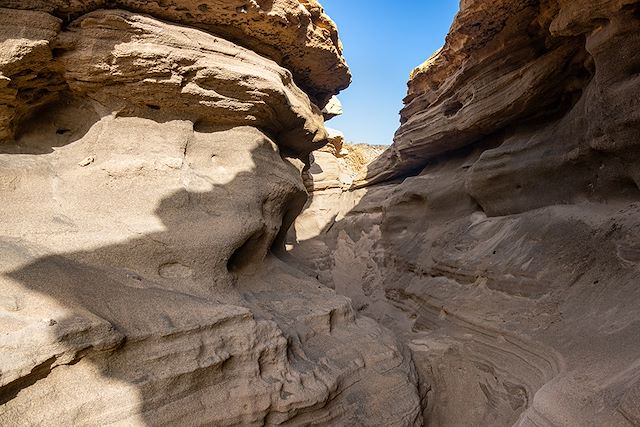 Prenez de la hauteur avec cette randonnée vers l’un des plus hauts sommets de l’île (596 m). Depuis le cratère de la Montaña Blanca, la vue s’ouvre à 360° sur les plaines de lave, les vignes de La Geria, la mer et les reliefs du parc naturel de Timanfaya. En chemin, découvrez deux anciennes citernes d’eau de pluie creusées dans la roche. Une variante de l’itinéraire vous conduit au Canyon de Las Grietas, un ensemble de failles profondes aux parois striées, que l’on traverse comme un couloir naturel taillé dans la lave, créant un décor minéral singulier et mystérieux.