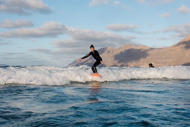 En fonction de vos envies et de la météo, vous pouvez rejoindre les plages du nord de l'île, comme la plage de Famara, vaste et sauvage, idéale pour une balade ou une baignade, ou encore Caletón Blanco, crique de sable blanc et d’eaux cristallines nichée dans un décor volcanique.