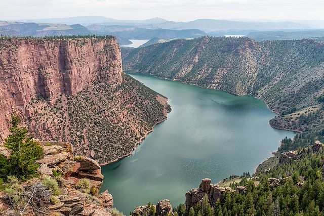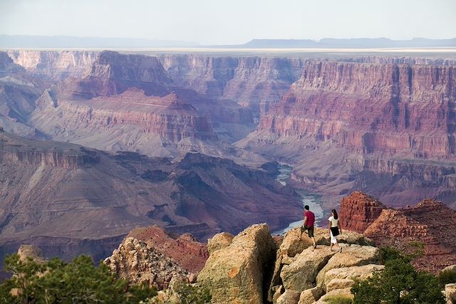 Le fabuleux parc de Yellowstone est une immense caldeira d’où s’échappent fumerolles, geysers et sources chaudes en plus de la présence d’une faune particulièrement abondante. Au sud, se trouve le parc de Grand Teton, une alternance de plaines, de chaînes montagneuses aux pics glacés et de rivières sinueuses. Flaming Gorges a conservé la mémoire des dinosaures et des peintures rupestres, début des terres arides de l’Utah ! Canyonland, Arches et Zion offrent un délire géologique de roches tourmentées aux reflets ocre orangé et de canyons étroits. Grand Canyon nous dévoile ensuite des parois abruptes et le cours capricieux du fleuve Colorado. Nous terminons au cœur du Nevada désertique à Las Vegas, une oasis de casinos et de néons clignotants, qui tranche un peu avec le voyage nature que l'on vient de faire ! Ce voyage est un parfait mélange de sites incontournables et étapes hors sentiers battus ; de longues randonnées et de balades droit au but ; de paysages de montagnes, de prairies verdoyantes, de canyons et déserts éblouissants.