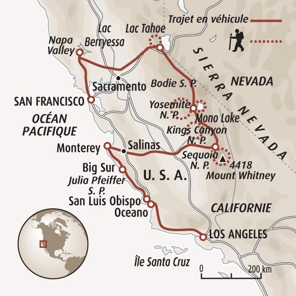 Durée des étapes : 1h à 6h* (* Yosemite).