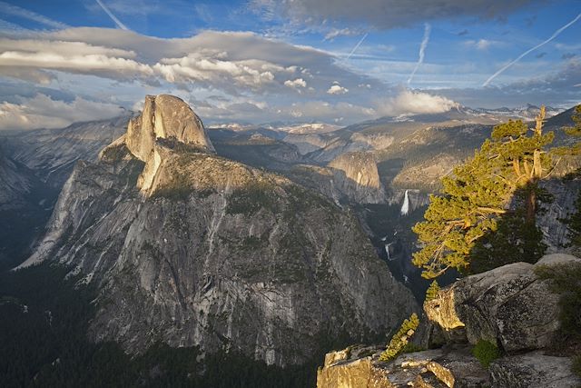 Au fond de la vallée, Half dome se reflète dans la rivière Merced. Le Sentinel Bridge est un point de vue remarquable sur ce panorama. C’est également dans cette région que vous pourrez admirer l’emblématique Yosemite Fall, dont les eaux tombent de 740m avant de s'écraser sur les rochers. En fonction de la saison et de la quantité de pluie tombée les semaines précédant votre séjour, les chutes peuvent être impressionnantes… ou à sec.