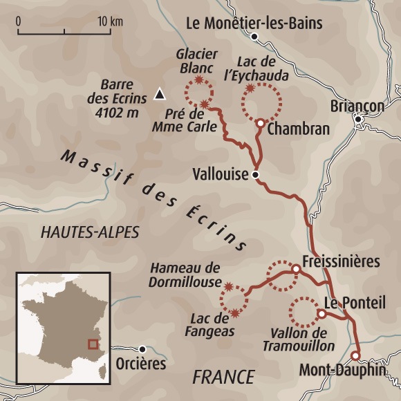 Le massif des Écrins opère la transition entre les Alpes du Nord et celles du Sud, entre Alpes et Préalpes. Cette particularité fonde un territoire d’une grande diversité, où chaque vallée possède son identité propre. Plongez au cœur du Parc National des Écrins et laissez vous émerveiller par la diversité de ses paysages. De sommets vertigineux en hameaux isolés, des glaciers ancestraux aux étincelants lacs d'altitude, chaque journée réserve son lot de merveilles à explorer. Vous serez logés dans un hôtel chaleureux niché au cœur de la vallée de Freissinières. Un emplacement stratégique pour partir à la conquête de ces trésors naturels, tout en profitant d'un havre de repos après vos aventures en montagne.