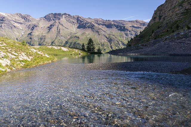 Pour notre ultime journée de randonnée, nous irons à la découverte de la haute vallée de Freissinières. Notre programme promet une succession de merveilles : une cascade majestueuse, un beau mélézin, la quiétude d'un lac idyllique, et enfin, la découverte du seul hameau encore habité du Parc National des Écrins.