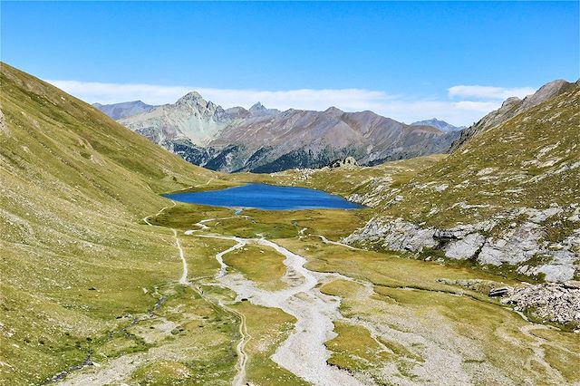 Ce voyage incarne l’élan de la grande traversée alpine, une itinérance continue qui relie les vallées et donne du sens à chaque pas. Il s’adresse aux randonneurs engagés, attirés par la durée, le rythme de la marche et le plaisir d’un effort régulier loin des foules. Nous avançons sur le troisième tronçon de la Traversée des Alpes, en suivant le fil du GR5, repère discret et chargé d’histoire. De la région du Thabor à Névache, de Briançon au Queyras, puis vers l’Ubaye et la Val Maira, nous passons d’une vallée à l’autre, toujours hors des stations. Le terrain varie, l’altitude s’installe, la lumière change. Chaque étape révèle un territoire vivant, minéral et habité. On marche longtemps, on ralentit parfois, on partage des soirées simples. Une itinérance cohérente et exigeante, portée par le plaisir brut de parcourir les Alpes du sud au long cours.