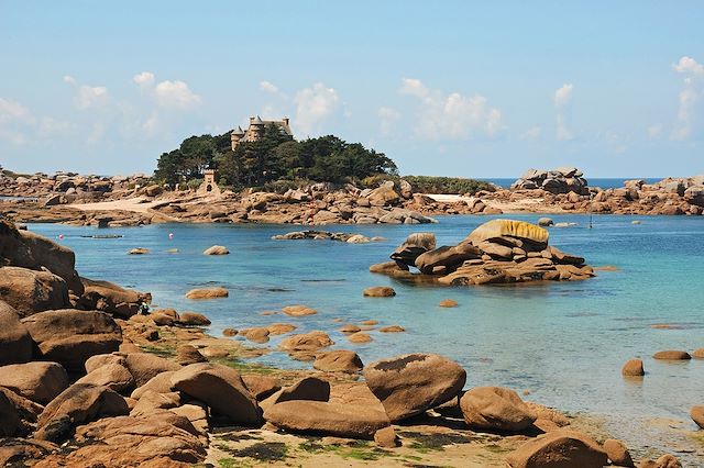 Prendre le temps d’arpenter un littoral façonné par la mer et le granit, voilà la promesse de ce voyage, idéal pour les marcheurs en quête d’un itinéraire simple entre villages de caractère et sentiers côtiers. Depuis Tréguier, nous suivons chaque jour le GR34 : le paysage se transforme au rythme de nos pas entre le chaos rocheux de Ploumanac’h, les plages claires, les criques protégées et la Pointe du Château balayée par le vent. Le gouffre de Plougrescant et Castel Meur complètent cette itinérance au bord de l’eau. Entre granit rose et lumière marine, la côte se dévoile avec justesse et caractère.