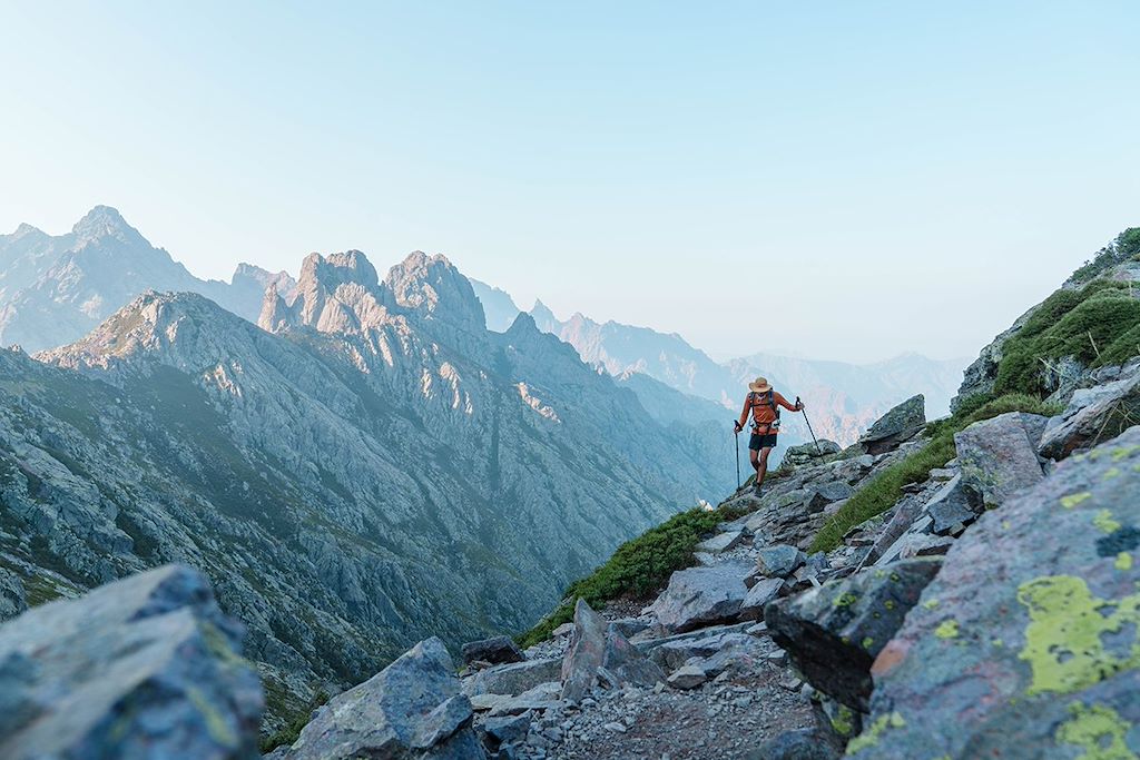 L’idée de ce voyage : parcourir le GR20 dans son esprit originel, avancer pas à pas sur l’épine dorsale de la Corse et ressentir le rythme d’une itinérance exigeante, entre crêtes, vallées et refuges.