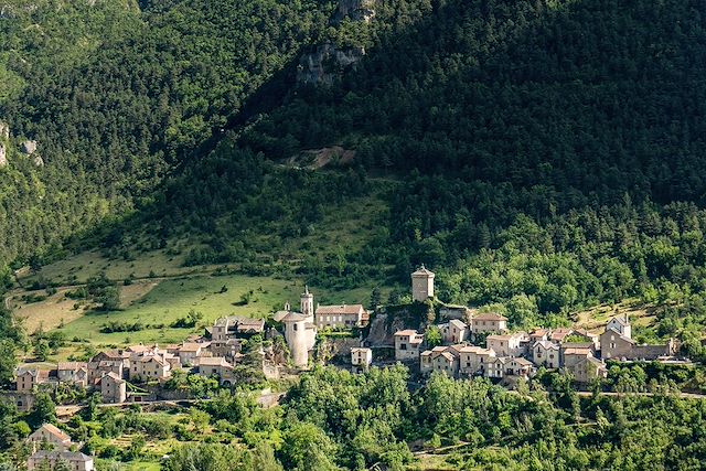 Aujourd'hui, montée vers le Causse de Sauveterre le long du Valat de la Curée. Nous traversons le Causse d'ouest en est par les petits hameaux, avec une alternance de paysages ouverts et forestiers jusqu'à Champerboux. Descente vers les Gorges du Tarn en direction du village médiéval de Sainte-Enimie et sa source légendaire.
