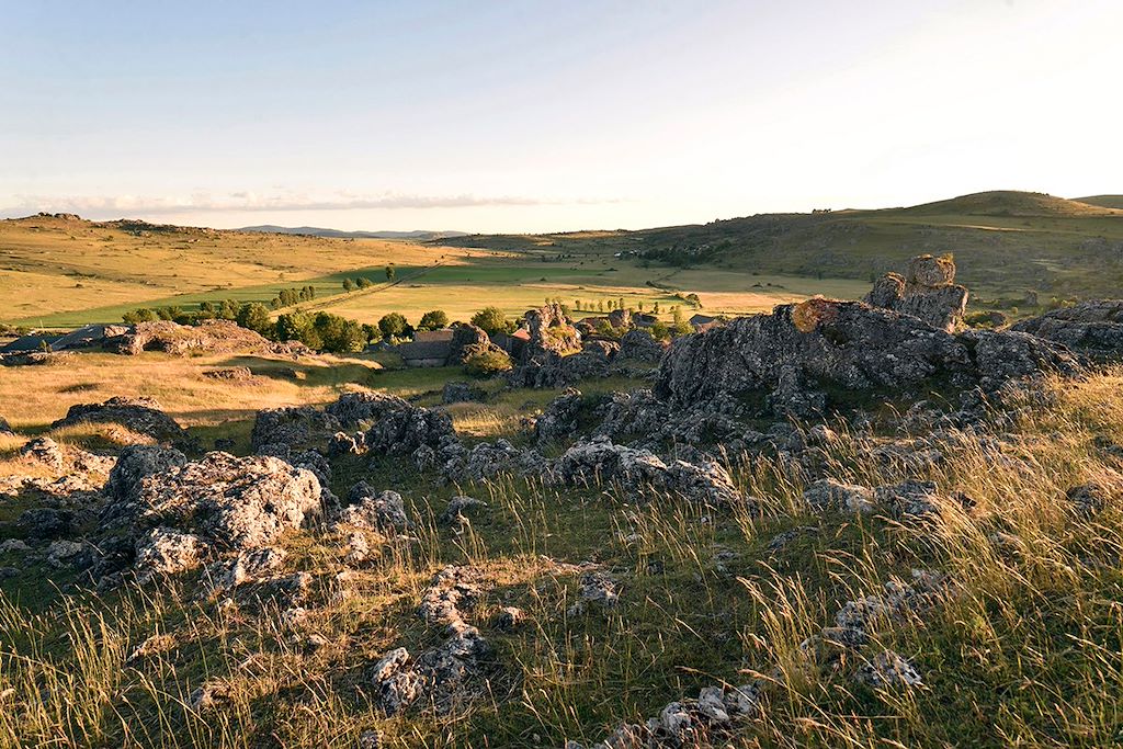 Au départ de l’Espérou, niché sur les pentes méridionales du mont Aigoual, votre itinéraire gagne les plateaux suspendus du causse Noir, dont l’ambiance boisée contraste avec celle du Méjean. Vous progressez sur de belles pistes entre landes, forêts et petites rivières, avant de rejoindre le Chaos de Montpellier-le-Vieux, étonnant relief rocheux, grand frère de celui de Nîmes-le-Vieux admiré la veille. La route plonge ensuite vers les gorges de la Dourbie, puis une ascension plus soutenue s’annonce : la montée vers le causse du Larzac. Par certains aspects, ce plateau rappelle le Méjean, avec ses vastes étendues ouvertes et dépourvues de forêts, mais la présence humaine y est plus marquée, les terres cultivées plus nombreuses. Ici, l’identité paysanne se ressent pleinement : depuis plusieurs décennies, les habitants défendent avec détermination une agriculture locale et de qualité, véritable fierté de ce territoire. Votre étape du soir se niche au cœur du Larzac. Après cette traversée des causses, vous y trouverez un accueil chaleureux et un dîner typique, mettant à l’honneur le fromage de chèvre, incontournable spécialité locale.