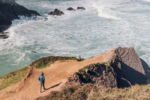 Il est impensable de passer une semaine de randonnée au Pays basque sans s’imprégner des embruns de l'océan ! Nous mettons donc le cap sur l’Espagne (Pays basque sud). Perché au-dessus de la baie de Txingudi, qui sépare Hendaye de Hondarribia, le mont Jaizkibel, une montagne côtière culminant à 545m, nous ouvre ses flancs pour nous permettre de respirer l’air marin, si cher aux Basques, traditionnellement pêcheurs et grands voyageurs. Nous partirons alors à la découverte de l’extrémité ouest des Pyrénées, où l’océan et la montagne se fondent dans des panoramas époustouflants de forêts, landes et falaises côtières. Un véritable concentré de paysages basques !