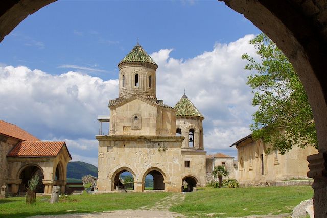 Nous partons pour l'ouest du pays avec un premier arrêt à Mtskheta. Centre culturel et religieux de la Géorgie, elle fut la capitale du royaume géorgien de l'est de l'Ibérie. Située à la confluence des rivières Aragvi et Mtkvari, la ville était un carrefour de nombreuses routes commerciales. C’est là que les Géorgiens ont accepté le christianisme au début du VIe siècle. La ville et ses monuments architecturaux sont inscrits au patrimoine mondial de l’Unesco. Visite de l’église de Jvari (VIe siècle) et de la cathédrale Svetiskhoveli (XIe siècle) considérée comme l’un des endroits les plus sacrés de Géorgie car elle renfermerait la tunique du Christ. Continuation vers Uplistsikhe, ville troglodytique (IVe siècle av.J.-C.) située sur l'une des grandes routes de la soie. Nous découvrons les grottes troglodytiques, caves à vin (marani), poêles géorgiens (thoné), la basilique à trois nefs creusée dans le rocher et le théâtre antique. Nous reprenons la route pour Kutaisi où nous passons la nuit.