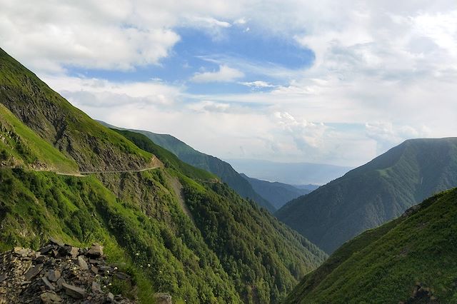 Le voyage se déroule principalement en été, de mi-juin à mi-septembre, lorsque les routes de montagne sont dégagées et les villages accessibles. La Tushétie et la Svanétie bénéficient d’un climat frais et agréable, idéal pour la randonnée : températures autour de 20-25?°C en journée, plus fraîches en altitude. Les soirées peuvent être fraîches, surtout en montagne. Les pluies restent rares mais possibles, surtout en Svanétie. L’été géorgien offre un environnement lumineux et des paysages contrastés, parfait pour profiter pleinement des villages perchés et des panoramas montagneux.