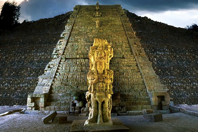 Départ très matinal, petit déjeuner à la main, pour le site maya de Copán, situé au Honduras. Nous empruntons la route qui contourne la capitale et roulons toute la matinée. L'après-midi est consacré à l'exploration de Copán et de son site à couper le souffle, célèbre notamment pour ses nombreuses stèles finement sculptées ainsi que son escalier entièrement ouvragé de glyphes mayas. L'ensemble est classé au Patrimoine mondial de l’Unesco. Visite du joli musée et installation à l'hébergement pour la nuit.