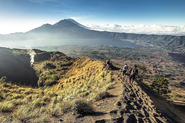 Embarquement pour Bali, île des dieux aux multiples facettes. Ce voyage, spécialement conçu pour les familles avec de grands enfants et adolescents, nous propose de découvrir l'île à travers de nombreuses activités ludiques et sportives. A notre arrivée, nous rejoignons la région d'Ubud pour un début de voyage les pieds dans l’eau et c’est en rafting que nous découvrons une nature sauvage et préservée. Changement de décor au sommet du volcan Batur, dont l'ascension de nuit et le lever du soleil nous offrent des panoramas à couper le souffle. Puis c'est à vélo, à travers les rizières pittoresques de Luwus, que nous poursuivons notre aventure et découvrons les traditions de la campagne balinaise. Les chutes d'Aling-Aling révèlent la splendeur naturelle de l'île, et nous permettent quelques baignades rafraichissantes avant de rejoindre la côte est. Nous quittons le cœur de l'île, ses montagnes et ses volcans pour profiter des fonds sous marins de la baie d'Amed et ses eaux foisonnantes de vie. Notre séjour se conclut par des journées de détente à Virgin Beach et Seminyak, où les plages et les vagues nous invitent à la découverte du surf. Un voyage riche en expériences, aventures sportives, découvertes culturelles et moments de détente, autant de moments forts qui seront vos plus beaux souvenirs de voyage.