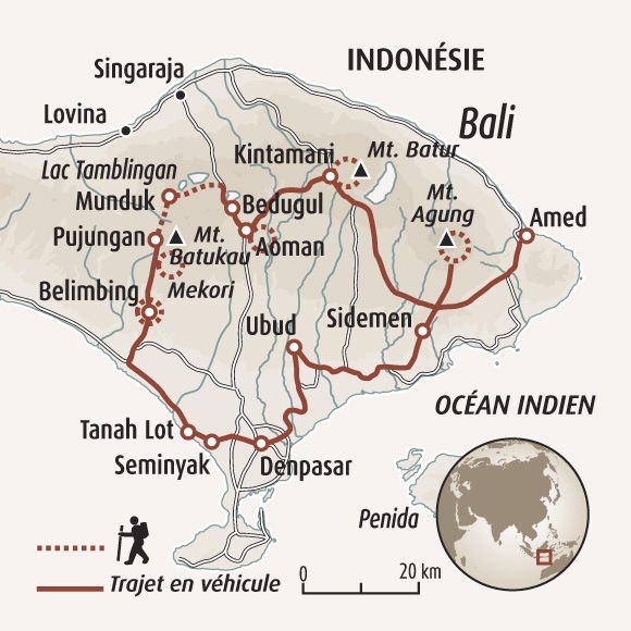 Un voyage au rythme soutenu à la découverte de Bali qui vous surprendra par la diversité de ses paysages. Volcans majestueux, univers minéral, forêts denses et tropicales, panoramas sur les rizières en terrasses.