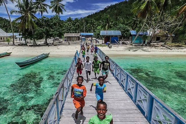 • L'archipel des Raja Ampat : ce voyage tire son caractère exceptionnel du parc national des Raja Ampat. Situé aux confins de la Papouasie occidentale, cet archipel d'environ 1500 îles, îlots et récifs coralliens est au cœur du Triangle de Corail, considéré comme la zone marine la plus riche et la plus diversifiée au monde. Le parc national des Raja Ampat est parfois surnommé une « fabrique d’espèces », tant ses récifs regorgent de coraux durs et mous et de poissons colorés. Ses eaux cristallines abritent plus de 1 500 espèces de poissons et 600 variétés de coraux, ce qui en fait un véritable paradis pour les plongeurs et les amateurs de snorkeling. Au fil de cette aventure hors du commun, nous profitons de paysages spectaculaires, avec des pains de sucre, des mangroves, des lagons turquoise et des plages de sable blanc. Nous découvrons des villages papous où les habitants, issus de différentes ethnies, perpétuent des traditions ancestrales. La faune terrestre, rare et exotique, comprend oiseaux de paradis et marsupiaux. Cet écosystème fragile attire les voyageurs à la recherche d’aventure, de nature intacte et de rencontres authentiques. Naviguer dans ces eaux, c’est découvrir un monde hors du temps, entre beauté sous-marine et panoramas grandioses.