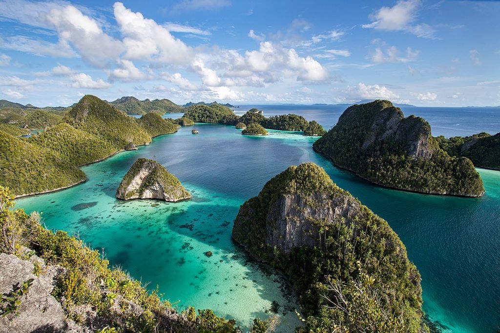 Les Raja Ampat, le rêve absolu de tout amoureux de navigation et de fonds marins. Situé aux confins de la Papouasie occidentale, à la croisée de l’océan Pacifique et de l’océan Indien, cet archipel à cheval sur les deux hémisphères incarne la beauté à l’état pur. Peu fréquenté, la région est classée parc national afin de protéger ses récifs coralliens d’une richesse exceptionnelle et sa biodiversité sous-marine unique au monde. A bord d'un bateau traditionnel en bois, nous glissons entre des rochers karstiques aux formes de champignons, longeons des falaises abruptes et accostons sur des îles de rêve où cocotiers et sable blanc s’étirent à perte de vue. Grottes mystiques, villages papous, lagons secrets aux eaux cristallines et jungles denses bordées de palétuviers composent ce décor envoûtant dont on ne se lasse pas. Sous la surface, le spectacle est tout aussi saisissant, un véritable aquarium à ciel ouvert. Les coraux y sont d’une infinie variété de formes et de couleurs, les bénitiers gigantesques, et les poissons d’une incroyable profusion. En snorkeling, il n’est pas rare de croiser tortues, requins, poissons-crocodiles, raies manta ou même quelques dauphins curieux. La vie aux Raja Ampat se résume ainsi : naviguer, plonger, observer, s’émerveiller. Vivre au rythme de la mer et de la nature, déconnectés, loin du monde et de toute son agitation.