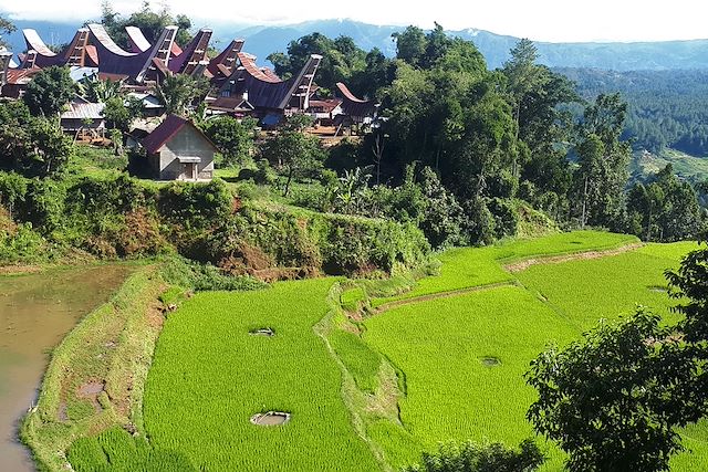 Le matin, transfert à l’aéroport et vol pour Makassar . Accueil par votre guide et départ directement vers le Pays Toraja. Premier arrêt dans la région Maros, pour y découvrir le site archéologique de Rammang Rammang. En pirogue motorisée, vous traversez la rivière pour joindre ce site magnifique et profiter des paysages karstiques de la région. Balade à travers des rizières avec vue superbe sur les collines, visite d’une maison sur pilotis et premières rencontres avec les locaux à la découverte de leurs activités quotidiennes. Vous reprenez la route en direction de Pare Pare pour un déjeuner en bord de mer. La route rentre ensuite dans l’arrière-pays et s’élève dans les montagnes, vous offrant de magnifiques panoramas. Arrivée en fin de journée à Rantepao, ville principale du Pays Toraja. Les jours suivants seront remplis de découvertes culturelles et immersives au cœur de la tradition toraja ! Si l'opportunité se présente et que vous le souhaitez, votre guide pourra vous emmener assister à des cérémonies funéraires.