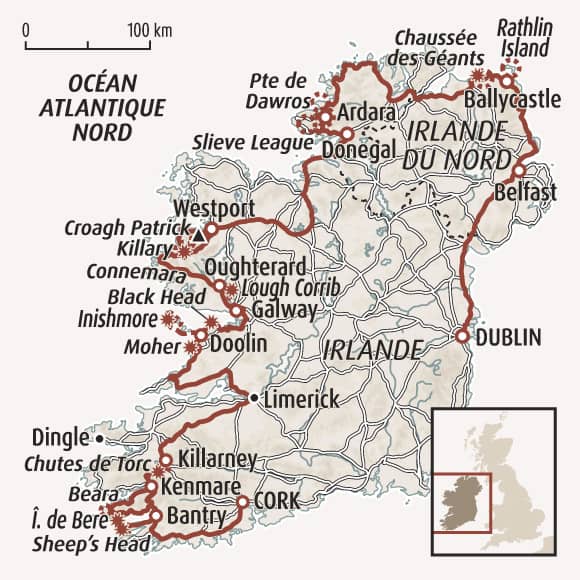 Parcourir l’Irlande dans toute sa diversité, c’est s’engager dans une grande traversée façonnée par l’océan, la marche et les rencontres.Ce séjour s’adresse aux voyageurs actifs qui aiment prendre le temps, marcher et ressentir l’identité des lieux traversés. Des vallées adoucies par le Gulf Stream aux champs de pierres du Burren, nous avançons vers les îles d’Aran, entre murets de pierre et horizons atlantiques. Après une halte animée à Galway, la marche reprend dans le Connemara puis le Donegal, sur des chemins ouverts et sauvages. Le parcours s’achève face aux orgues basaltiques de la Chaussée des Géants, avant Belfast, où se croisent histoire, culture et énergie contemporaine.