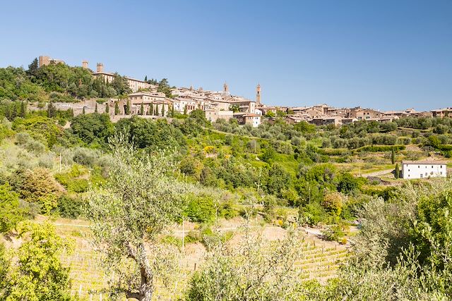 Ce matin, une route sinueuse bordée de cyprès vous mène en direction du charmant village fortifié de Montechiello. Vous roulez sur les célèbres Strade Bianche, ces chemins de gravier blanc, jusqu’à la cité Renaissance de Pienza, également connue pour avoir servi de décor au film Gladiator. Le paysage idyllique du Val d’Orcia vous accompagne jusqu’à Montalcino, berceau du prestigieux Brunello, l’un des vins rouges les plus renommés d’Italie. Prenez le temps d’en savourer un verre dans l’un des nombreux bars à vin du village.