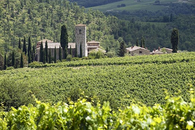 Pour votre dernière étape à vélo, vous pédalez sur une route vallonnée en direction de Florence, entre grands vignobles, oliveraies et villages médiévaux, jusqu’à Greve in Chianti. Le trajet se déroule toujours au milieu des maisons de pierre, des allées de cyprès et de panoramas splendides. En approchant la capitale toscane, vous profitez d'une descente paisible jusqu’au Ponte Vecchio. Vous avez sans doute déjà trouvé votre vin toscan préféré : savourez-en un dernier verre pour conclure votre voyage en beauté à Florence.