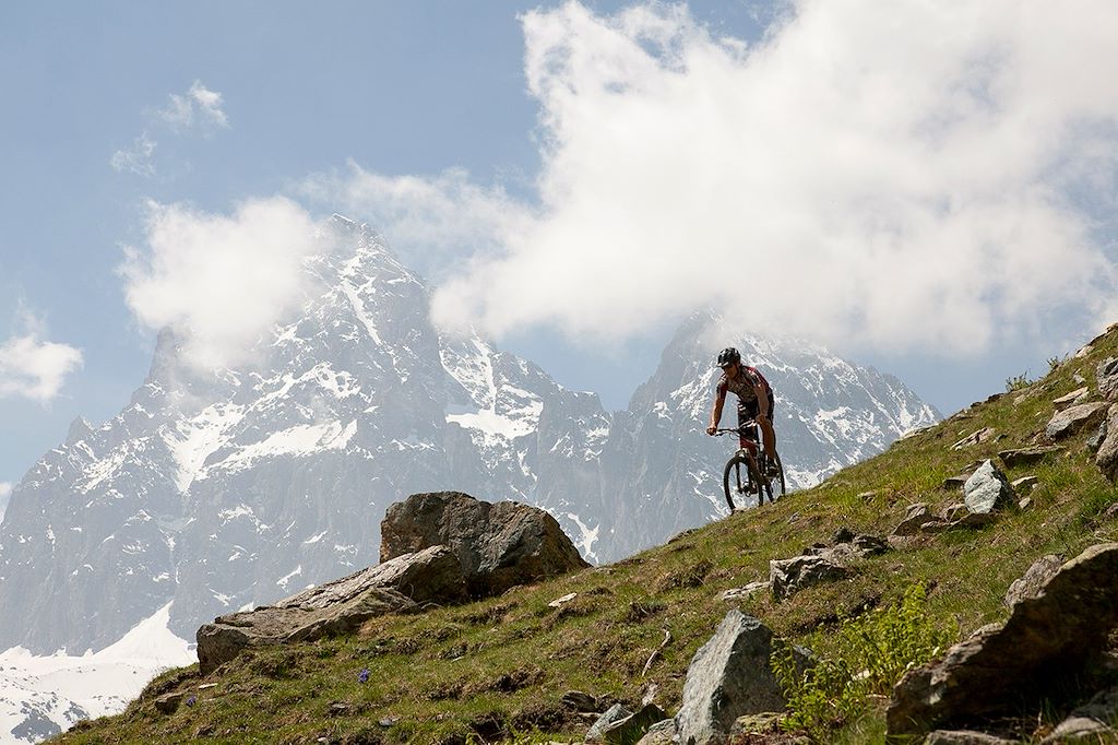 L'activité VTT en montagne nécessite une bonne condition physique ainsi que des aptitudes techniques en montée et en descente. L'assistance électrique permet d'adoucir l'effort en montée mais n'exclut pas la maitrise de l'équilibre et des trajectoires lors des descentes. Le guide apporte de précieux conseils et peut adapter l'itinéraire en fonction du niveau du groupe et de l'ensemble des participants si besoin.