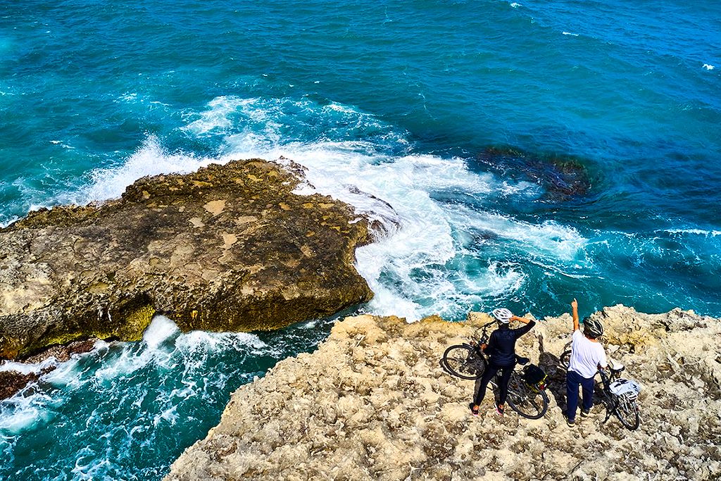 Le Salento est une province des Pouilles qui offre tous les ingrédients d'une destination immanquable d'un séjour à vélo. Bordées par l'Adriatique d'un côté et la mer Ionienne de l'autre, les Pouilles déroulent d'infinis champs d'oliviers, de blé et des vignes. Sur de petites routes tranquilles et traversant d'étranges villages, vous découvrez une région d'une beauté remarquable et préservée, alternant vues sur mer et paysages ruraux, et aux riches vestiges historiques et culturels, jusqu’à Lecce, la Venise baroque.