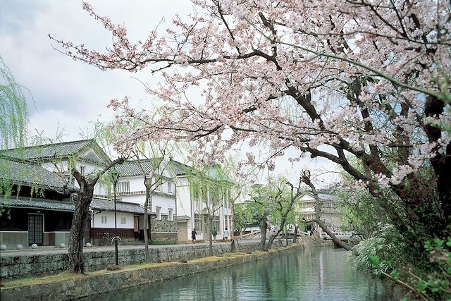 Nous prenons le train pour Kurashiki (via Okayama), où nous découvrons le quartier historique de Bikan, qui nous rappelle le passé florissant de cette ville marchande durant l'ère d'Edo. L'architecture traditionnelle bien préservée confère au lieu beaucoup de charme. Nous visitons la somptueuse maison de la famille Ohashi, très représentative de l'architecture prisée des riches marchands de la ville.