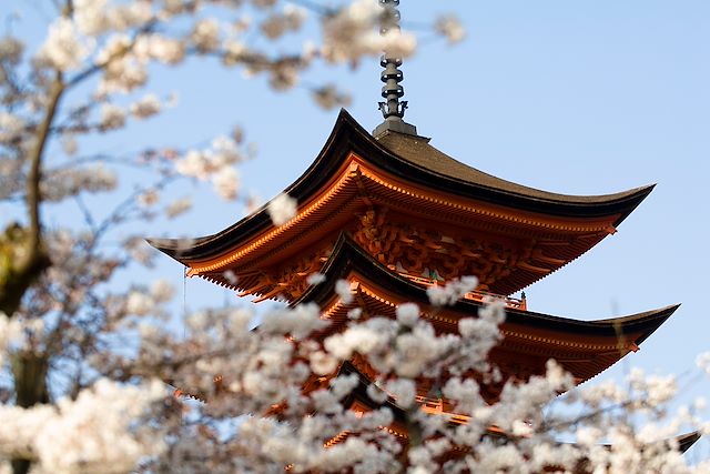 Journée d'excursion (en transport public) sur l'incontournable île de Miyajima, "l'île aux sanctuaires". L'île, dont le nom véritable est Itsuku-shima, est l'un des sites les plus sacrés du Japon. C'est aussi l'un des sites les plus photographiés avec son emblématique torii rouge qui émerge des flots. Nous visitons le sanctuaire shinto d'Itsuku-shima, classé au patrimoine mondial de l'UNESCO puis montons à pied au sommet du Mont Misen, où nous profitons d'une très belle vue. Retour à Hiroshima.