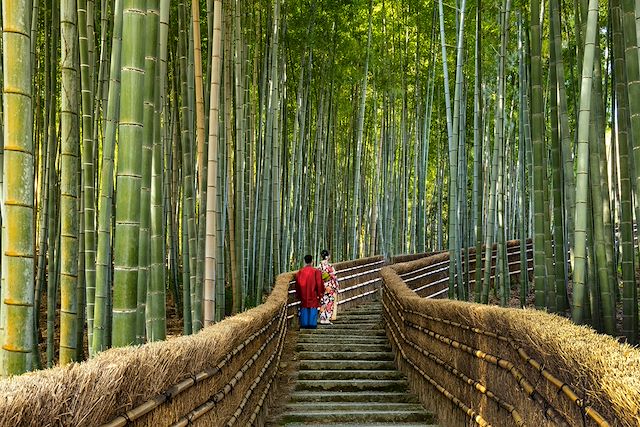 Nous marchons le long de la rivière Kiyotaki et arrivons à Arashiyama, dont nous visitons la célèbre bambouseraie.