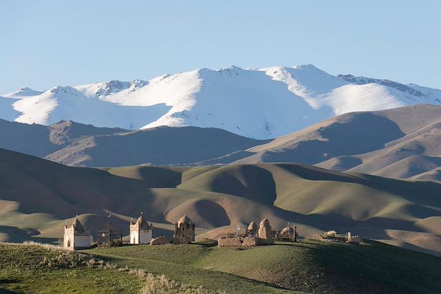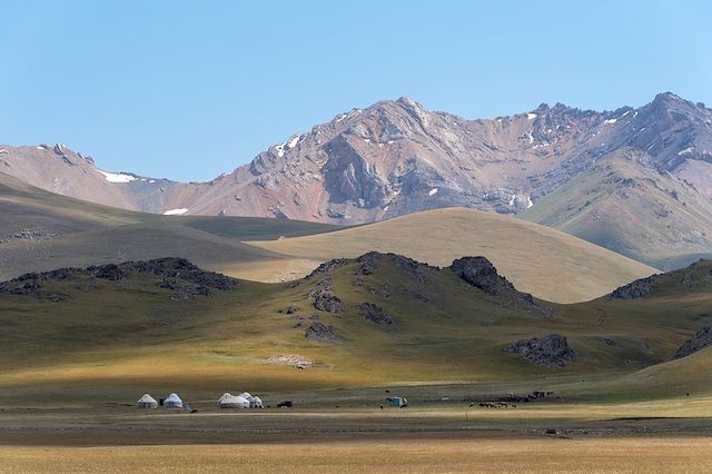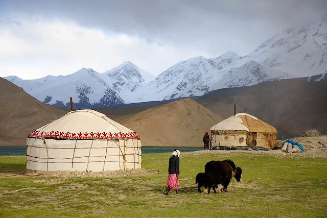 Ce voyage propose une itinérance pour découvrir la diversité des paysages kirghizes, dans des milieu naturels préservés et grandioses. Le lac Song Kul attire les nomades et leurs troupeaux, qui viennent y chercher les excellents pâturages d'été ; nous y ferons notre premier trek dans les immenses steppes, au pied des montagnes. Puis direction la rive sud du lac Issyk Kul, bordée par la chaîne des Terskei, zone sauvage où nous randonnons dans e beaux reliefs pour rallier les magnifiques lacs d'Ozero Tesshikel. Les grès rouges de Kornochek et les montagnes boisées du parc de Chong Kemin complèteront magnifiquement ce périple en terre nomade.