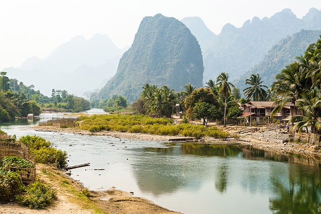 Découverte de Vang Vieng, ville construite le long de la rivière Nam Song, dominée par un imposant massif calcaire percé de grottes, recouvert de jungle et brousse sur ses hauteurs. Installation à l’hôtel puis départ à pied pour visiter les impressionnantes grottes de Tam Chang (selon l'horaire de train, la visite de Tam Chang pourra se faire le lendemain). Retour à Vang Vieng en fin d’après midi et temps libre.