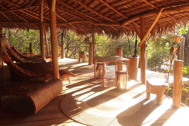 La grande terrasse extérieure donne sur le lac et les falaises du massif des tsingy