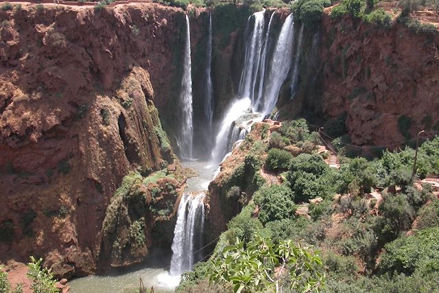 Petit-déjeuner copieux à l'auberge. Dernière marche dans la vallée, découverte de l'ancien grenier de Sidi Moussa. Transfert retour à Marrakech, via Azilal, détour par le site des cascades d’Ouzoud, balade possible avec arrêt déjeuner. Poursuite du transfert et arrivée à Marrakech en fin d'après-midi. Installation et nuit à l’hôtel. Dîner libre.