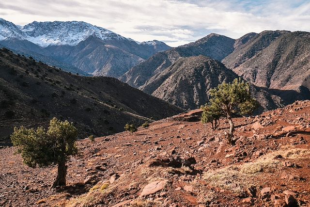 Choisir ce combiné Toubkal et M’Goun, c’est s’engager dans une itinérance où altitude et pas de randonnée rythment chaque journée. Entre contreforts du Haut Atlas et crêtes du Toubkal (4167m), nous progressons sur des sentiers minéraux. Le plateau de Tarkedit et les alpages du M’Goun (4068m) nous accueillent ensuite, ponctués de rencontres avec muletiers et communautés nomades. Les bivouacs et les sommets marquent cette itinérance, offrant une immersion complète dans les panoramas minéraux et la grandeur des montagnes marocaines. 12 jours, 2 sommets, 2 ambiances dans ces montagnes "rares".