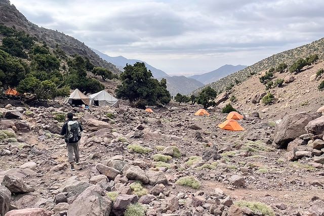 Sur ce circuit, vous allez vivre 10 jours consécutifs en altitude avec des bivouacs entre 1700 m et 3200 mètres d'altitude dont deux ascensions à 4167m et 4068m. Vous enchainerez 7 nuits en bivouac ponctuées d'une nuit dans un gîte de montagne avant votre journée de transfert entre 2 régions de l'Atlas.