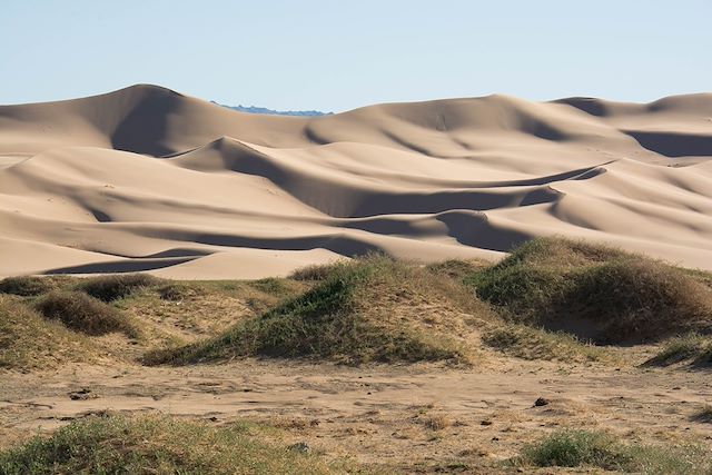 Le mythique désert de Gobi, situé au sud de la Mongolie, offre une grande palette de paysages : dunes de sable, imposantes chaînes de montagnes creusées de canyons, vastes plaines désertiques. Il sera notre point de départ : après une courte randonnée dans le canyon gelé de Yoliin Am, nous partons pour un trek en itinérance le long du cordon dunaire de Khongoryn Els, qui s'étire sur plus de 100km entre deux chaînes de montagnes.