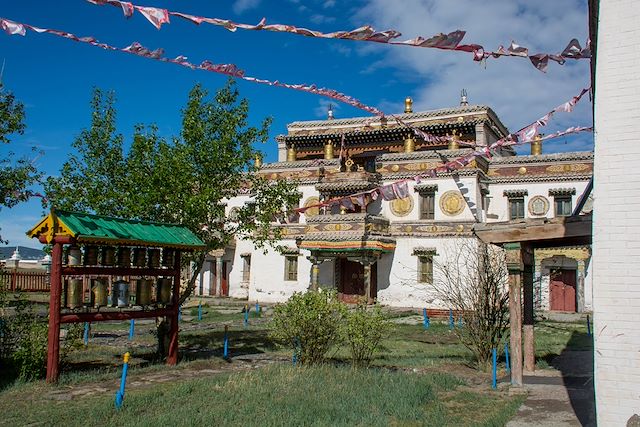 Le matin nous partons pour Kharkhoryn, ville bâtie sur l’emplacement de l’ancienne capitale de l'empire mongol, Karakorum, fondée par Gengis Khan entre 1220-1221 et rasée entièrement en 1380. Nous visitons le monastère Erdenezuu, le plus ancien de la tradition du bonnet jaune en Mongolie, fondé en 1586 par Abdai Khan et qui comprenait au début du 20ème siècle plus de 600 édifices religieux. La plupart des bâtiments d’origine ayant échappé à la destruction ont été transformés en musée, et depuis la chute du régime soviétique, un des temples sert à nouveau de lieu de culte bouddhiste. Route pour le parc national de Khugnu Tarna, plus connu sous le nom de Khogno Khan, caractérisé par de superbes formations granitiques.